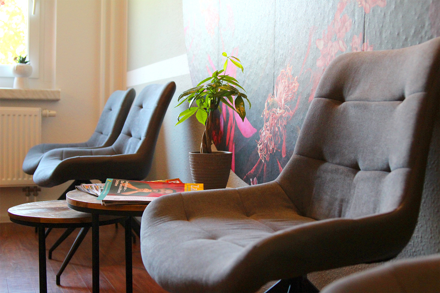 Unser Team von zwei Zahnärztinnen, fünf Zahnarzthelferinnen und Therapiehund Bucky ist mit Herz und Seele für Sie da. Bei uns darf jeder Mensch so sein, wie er ist. Wir freuen uns, wenn wir Ihnen ein bisschen Last abnehmen und etwas von unserer Leichtigkeit und positiven Energie zurückgeben können. Der Gute-Laune-Faktor wird auf Sie überspringen – versprochen!
